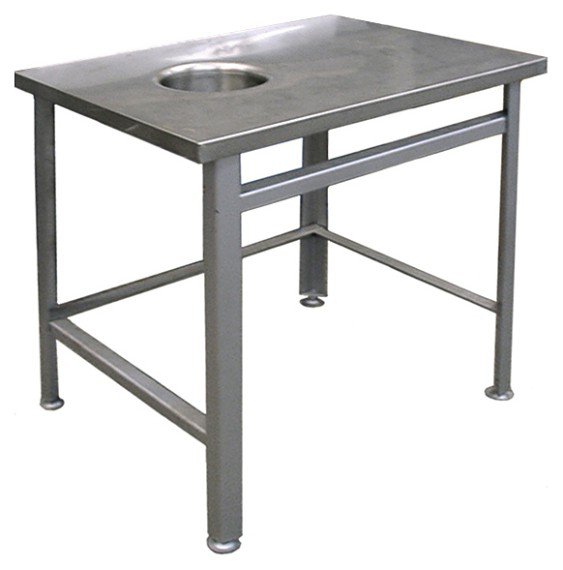 Стол для сбора отходов Hessen СПОО 9/6 используется в цехах на предприятиях общественного питания и торговли. Модель оснащена отверстием для сбора отходов, расположенным в центре. Изделие произведено с использованием программы Technology without Injuries - комплекса технологических решений, направленных на уменьшение травмоопасности для персонала, работающего на оборудовании. Каркас выполнен из углеродистой стали, покрытой полимерной краской, столешница - из пищевой нержавеющей стали.