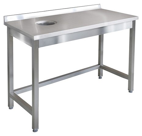 Стол ITERMA СБ-241/1206 используется на предприятиях общественного питания и торговли для разделки и обработки пищевых продуктов, а также для сбора отходов, появляющихся в процессе этой работы. Модель оснащена ножками, регулирующимися по высоте. Изделие выполнено из нержавеющей стали. Отверстие для сбора отходов расположено слева.