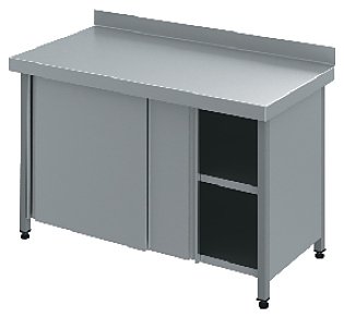 Производственный стол Cryspi Chef СРП Ш К предназначен для обработки ингредиентов для приготовления блюд, раскатки теста и хранения посуды, кухонных принадлежностей, сухих продуктов и напитков на предприятиях пищевой промышленности, общественного питания и торговли. Стол изготовлен из шлифованной нержавеющей стали AISI 430, каркас выполнен с применением профильной трубы, столешница усилена листом ЛДСП.