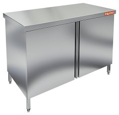 Производственный стол Техно-ТТ СПС-934/1000 предназначен для разделки и обработки пищевых продуктов, а также для расстановки и хранения посуды и кухонного инвентаря на предприятиях общественного питания и торговли. Модель оснащена 2 дверями-купе и регулируемыми по высоте ножками, что позволяет компенсировать неровности пола. Сварной корпус выполнен из нержавеющей стали AISI 430, столешница - из нержавеющей стали AISI 430 и ЛДСП, полка - из нержавеющей стали, задняя стенка - из оцинкованной стали.