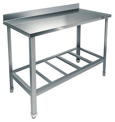 Производственный стол KAYMAN СП-244/1307 используется на предприятиях общественного питания и торговли для раскатки теста и обработки ингредиентов для приготовления блюд, а также как дополнительное место для установки и хранения кухонных приборов, инвентаря и сухих продуктов. Модель оснащена полкой-решеткой. Каркас изготовлен из нержавеющего уголка AISI 430 толщиной 1,5 мм, полка и столешница - из нержавеющей стали AISI 430, усиленной листом ЛДСП для повышения устойчивости.