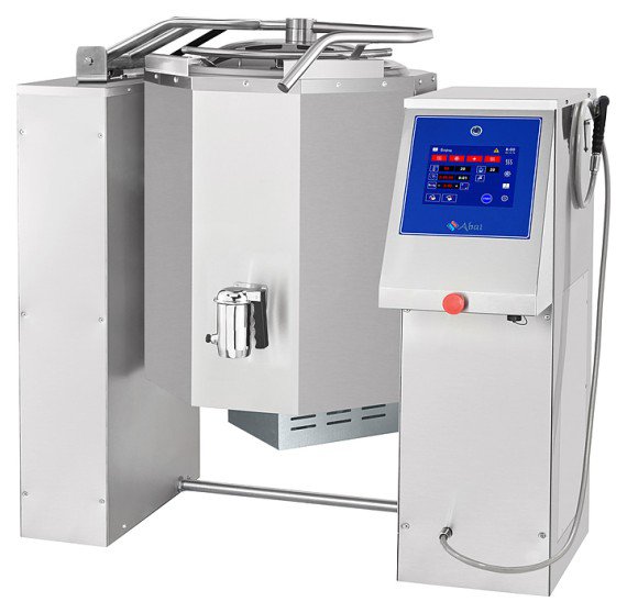 - Слив готового продукта путем опрокидывания варочного сосуда с помощью электропривода