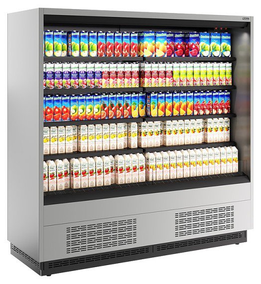 Холодильная горка Carboma FC 20-07 VM 1,9-2 версия 2.0 серии Cube 2 используется на предприятиях общественного питания и торговли для охлаждения, кратковременного хранения и предпродажной демонстрации напитков, мяса, птицы, полуфабрикатов, молочных и гастрономических изделий. Модель оснащена 4 рядами навесных полок с кронштейнами, глухими боковинами с зеркалами на внутренней поверхности, подставкой с фронтальной термовыводящей и цокольной решетками. Корпус прямоугольно ориентированной формы выполнен из стали с антикоррозийным покрытием внешних панелей, полок и кронштейнов серого цвета (RAL 9006), цоколя и интерьера черного цвета (RAL 9005), теплоизоляция – из пенополиуретана.