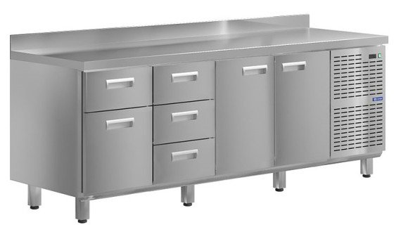 Морозильный стол KAYMAN KСМ-4311/70 предназначен для охлаждения, хранения и обработки пищевых продуктов в ресторанах, барах, кафе, столовых, на профессиональных кухнях и пищевых производствах. На прочной столешнице можно резать, раскатывать и отбивать полуфабрикаты. Модель оснащена 5 ящиками и 2 дверьми. Изделие выполнено из высококачественной нержавеющей стали, отличающейся прочностью и долговечностью.