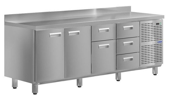 Морозильный стол KAYMAN KСМ-1143/70 предназначен для охлаждения, хранения и обработки пищевых продуктов в ресторанах, барах, кафе, столовых, на профессиональных кухнях и пищевых производствах. На прочной столешнице можно резать, раскатывать и отбивать полуфабрикаты. Модель оснащена 5 ящиками и 2 дверьми. Изделие выполнено из высококачественной нержавеющей стали, отличающейся прочностью и долговечностью.