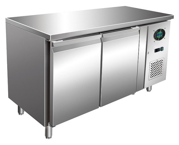 Морозильный стол VIATTO GN2100BT предназначен для обработки, охлаждения, заморозки и длительного хранения пищевых продуктов на предприятиях общественного питания и торговли. Модель оснащена расположенным сбоку агрегатным отсеком, электронным термостатом, столешницей, 2 морозильными камерами с распашными дверьми, 2 полками для гастроемкостей, устойчивыми опорами, кабелем питания и панелью управления с цифровым дисплеем. Корпус и столешница выполнены из высококачественной нержавеющей стали.