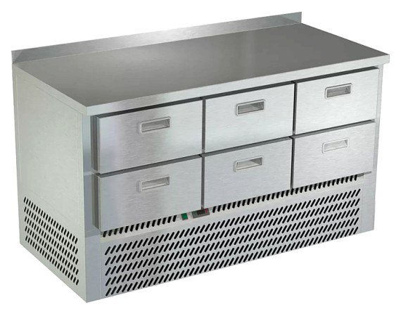 Морозильный стол Техно-ТТ СПН/М-223/06-1407 предназначен для раскатки теста, обработки, заморозки и долговременного хранения продуктов, полуфабрикатов, напитков и мороженого на предприятиях общественного питания и торговли. Модель оснащена компрессором, произведенным в Испании, 6 гастронормированными ящиками, направляющими с доводчиками (Австрия) и регулируемыми опорными ножками. Корпус и столешница выполнены из нержавеющей стали AISI 430, задняя стенка и дно - из оцинкованной стали.