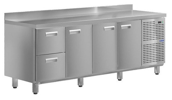 Морозильный стол KAYMAN KСМ-2111/70 предназначен для охлаждения, хранения и обработки пищевых продуктов в ресторанах, барах, кафе, столовых, на профессиональных кухнях и пищевых производствах. На прочной столешнице можно резать, раскатывать и отбивать полуфабрикаты. Модель оснащена 2 ящиками и 3 дверьми. Изделие выполнено из высококачественной нержавеющей стали, отличающейся прочностью и долговечностью.