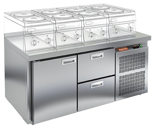 Морозильный стол HICOLD GN 12 BR2 BT LT предназначен для хранения предварительно замороженных пищевых продуктов, обработки ингредиентов в процессе приготовления блюд, а также размещения теплового оборудования на предприятиях общественного питания и торговли. Модель оснащена встроенным компрессорным холодильным агрегатом с боковым расположением, электронной панелью управления, столешницей c бортом, морозильной камерой с 2 секциями: 1 с распашной дверью и 1 с 2 выдвижными ящиками. Корпус и столешница выполнены из нержавеющей стали.