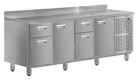 Морозильный стол KAYMAN KСМ-4141/70 предназначен для охлаждения, хранения и обработки пищевых продуктов в ресторанах, барах, кафе, столовых, на профессиональных кухнях и пищевых производствах. На прочной столешнице можно резать, раскатывать и отбивать полуфабрикаты. Модель оснащена 4 ящиками и 2 дверьми. Изделие выполнено из высококачественной нержавеющей стали, отличающейся прочностью и долговечностью.