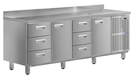 Морозильный стол KAYMAN KСМ-3131/60 предназначен для охлаждения, хранения и обработки пищевых продуктов в ресторанах, барах, кафе, столовых, на профессиональных кухнях и пищевых производствах. На прочной столешнице можно резать, раскатывать и отбивать полуфабрикаты. Модель оснащена 6 ящиками и 2 дверьми. Изделие выполнено из высококачественной нержавеющей стали, отличающейся прочностью и долговечностью.