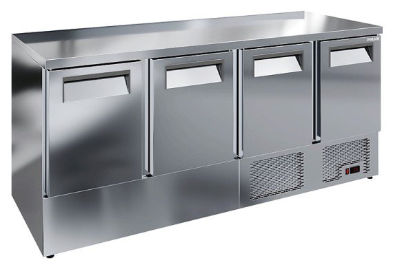 Морозильный стол POLAIR TВi4GN-GC предназначен для хранения продуктов и обработки ингредиентов на рабочей поверхности на предприятиях общественного питания и торговли. Внешняя (кроме задней стенки) и внутренняя обшивка цельнозаливного корпуса и двери выполнены из нержавеющей стали и обеспечивают механическую прочность, термоизоляцию, герметичность и долговечность стола, теплоизоляция - из пенополиуретана, полки - из окрашенной оцинкованной проволоки. Оборудование рассчитано на работу при температуре окружающей среды до 32 °С.