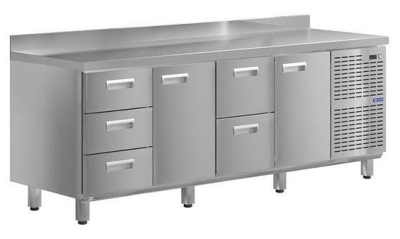 Морозильный стол KAYMAN KСМ-3121/70 предназначен для охлаждения, хранения и обработки пищевых продуктов в ресторанах, барах, кафе, столовых, на профессиональных кухнях и пищевых производствах. На прочной столешнице можно резать, раскатывать и отбивать полуфабрикаты. Модель оснащена 5 ящиками и 2 дверьми. Изделие выполнено из высококачественной нержавеющей стали, отличающейся прочностью и долговечностью.