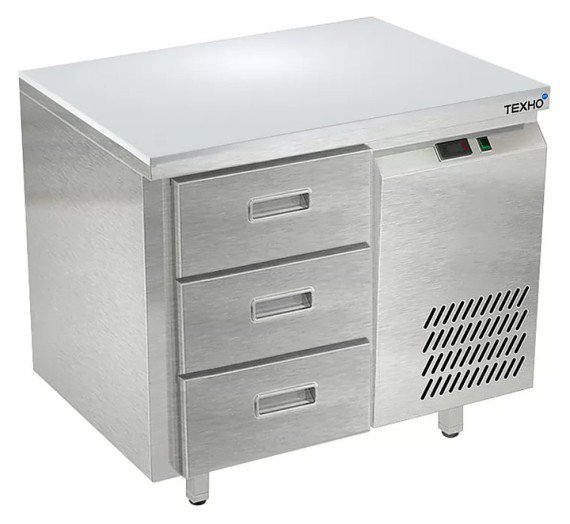 Морозильный стол Техно-ТТ СПБ/М-523/03-907 предназначен для раскатки теста, обработки, заморозки и долговременного хранения продуктов, полуфабрикатов, напитков и мороженого на предприятиях общественного питания и торговли. Модель оснащена 1 секцией с 3 ящиками, направляющими с доводчиками (Австрия) и круглыми ножками, регулируемыми по высоте на 50 мм (Италия). Корпус выполнен из нержавеющей стали AISI 430, задняя стенка и дно - из оцинкованной стали, столешница - из полипропилена.