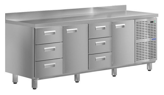 Морозильный стол KAYMAN KСМ-3113/70 предназначен для охлаждения, хранения и обработки пищевых продуктов в ресторанах, барах, кафе, столовых, на профессиональных кухнях и пищевых производствах. На прочной столешнице можно резать, раскатывать и отбивать полуфабрикаты. Модель оснащена 6 ящиками и 2 дверьми. Изделие выполнено из высококачественной нержавеющей стали, отличающейся прочностью и долговечностью.
