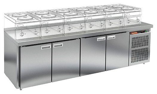 Морозильный стол HICOLD SN 1111 BR2 BT LT предназначен для хранения предварительно замороженных пищевых продуктов, обработки ингредиентов в процессе приготовления блюд, а также размещения теплового оборудования на предприятиях общественного питания и торговли. Модель оснащена встроенным компрессорным холодильным агрегатом с боковым расположением, электронной панелью управления, столешницей c бортом и морозильной камерой с 4 секциями с распашной дверью в каждой. Корпус и столешница выполнены из нержавеющей стали.