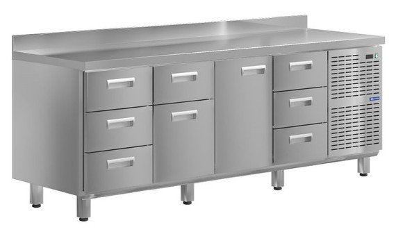 Морозильный стол KAYMAN KСМ-3413/60 предназначен для охлаждения, хранения и обработки пищевых продуктов в ресторанах, барах, кафе, столовых, на профессиональных кухнях и пищевых производствах. На прочной столешнице можно резать, раскатывать и отбивать полуфабрикаты. Модель оснащена 8 ящиками и 1 дверью. Изделие выполнено из высококачественной нержавеющей стали, отличающейся прочностью и долговечностью.