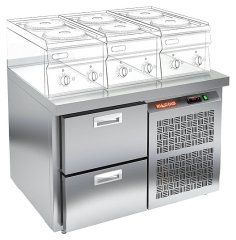 Стол морозильный Abat СХН-60-02 (1 дверь-стекло, 1 дверь, 2 ящика, без борта)