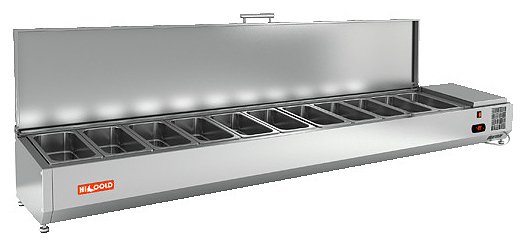 Настольная холодильная витрина HICOLD VRTU 2495 (1/4) используется на предприятиях общественного питания и торговли для демонстрации, охлаждения и кратковременного хранения салатов, гарниров, закусок и других готовых блюд. Модель оснащена электронной панелью управления, крышкой и опорными ножками. Корпус выполнен из нержавеющей стали.