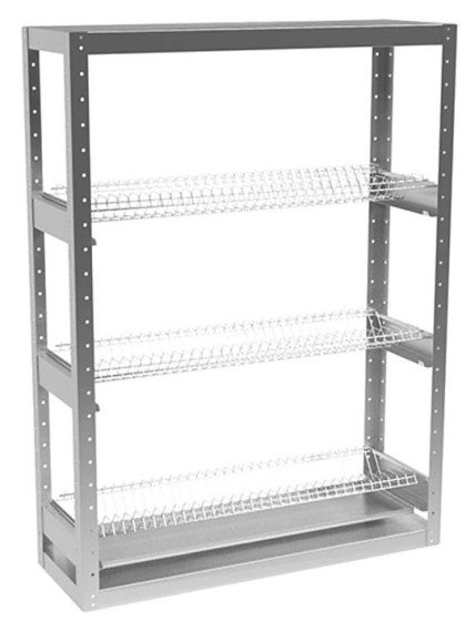 Стеллаж Пищевые Технологии Стандарт СКТН-3КС-2М предназначен для хранения тарелок на предприятиях общественного питания и торговли. Модель оснащена 3 сетками для тарелок и поддоном для сбора жидкости под нижней сеткой. Разборный каркас выполнен из уголка нержавеющей стали, поддон - из нержавеющей стали, сетки - из хромированной стали.