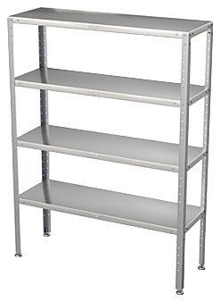 Кухонный стеллаж ATESY СТК-С-600.600.1600-02 серии Стандарт предназначен для хранения посуды, различного инвентаря и сухих продуктов на предприятиях общественного питания и торговли. Сплошные полки выполнены из нержавеющей стали AISI 430 толщиной 0,8 мм, каркас - из оцинкованной стали толщиной 1,2 мм, опора ножек - из пластика.