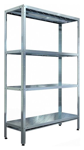 Кухонный стеллаж Assum СТПП-С-14/4 предназначен для хранения посуды, кухонного инвентаря и упакованных пищевых продуктов на предприятиях общественного питания и торговли. Модель оснащена 4 перфорированными полками, усиленными ребрами жесткости для увеличения полезной нагрузки, и регулируемыми по высоте пластиковыми опорами. Стойки выполнены из уголка оцинкованной стали 40x40 мм, полки - из нержавеющей стали AISI 430, ребро жесткости полок - из нержавеющей стали.