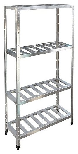 Кухонный стеллаж Restoinox СТПР-15/6-ЭЦ предназначен для хранения посуды, инвентаря и продуктов, не требующих специального температурного режима, на предприятиях общественного питания и торговли. Модель оснащена 4 регулируемыми по высоте полками-решетками. Разборный каркас выполнен из уголка 40х40 мм оцинкованной стали, полки - из нержавеющей стали AISI 430.