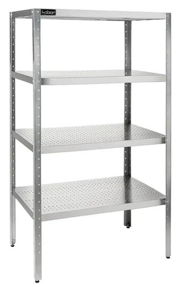 Стеллаж Кобор СКП-60/40 предназначен для хранения посуды, кухонной утвари и сухих продуктов на предприятиях общественного питания, торговли и в промышленно-производственных помещениях. Каркас выполнен в виде уголка 40х40 мм из оцинкованной стали, перфорированные полки - из нержавеющей стали AISI 430. Уникальная система крепления полок обеспечивает жёсткость конструкции стеллажа.