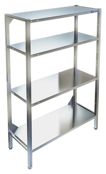 Кухонный стеллаж KAYMAN СК-251/0903 используется на предприятиях общественного питания и торговли, а также в промышленно-производственных заведениях для хранения различного оборудования, кухонных принадлежностей и сухих продуктов. Каркас выполнен из уголка 40х40 мм из оцинкованной стали, полки - из нержавеющей стали AISI 430.