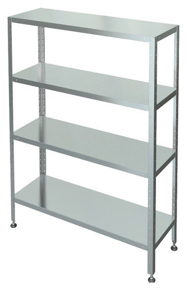 Стеллаж Марихолодмаш С-4-0,5/1,0/1,8 предназначен для хранения продуктов, посуды и кухонных принадлежностей в горячих и холодных цехах, на предприятиях общественного питания и торговли. Каркас выполнен из нержавеющей стали, полки - из нержавеющей стали AISI 430 толщиной 0,5 мм, усиленные швеллером.