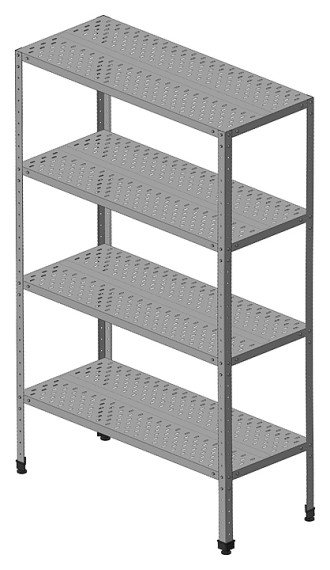 Стеллаж ITERMA СТК-П-Э-15/6 предназначен для хранения посуды, кухонной утвари и сухих продуктов на предприятиях общественного питания и торговли. Модель оснащена ребром жесткости и ножками, регулирующимися по высоте для сглаживания неровностей пола. Каркас выполнен из уголка 40х40 мм из оцинкованной стали, перфорированные полки - из нержавеющей стали AISI 430 толщиной 0,5 мм.