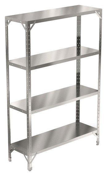 Кухонный стеллаж Техно-ТТ AppetiTT СР-16/1504н предназначен для хранения посуды, различного инвентаря и сухих продуктов на предприятиях общественного питания и торговли. Модель оснащена регулируемыми по высоте полками. Каркас выполнен из уголка нержавеющей стали AISI 430 толщиной 1,5 мм, сплошные полки - из нержавеющей стали AISI 430 толщиной 0,5 мм.