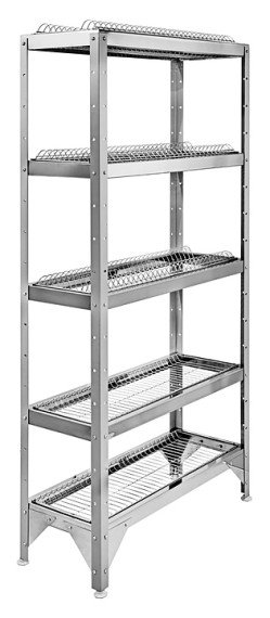 Стеллаж Hessen СТР-1,8*16/3+2 используется на предприятиях пищевой промышленности, общественного питания и торговли для хранения тарелок. Стеллаж оснащен 3 полками, предназначенными для сушки тарелок, и 2 - для стаканов и инвентаря. Изделие произведено с использованием программы Technology without Injuries - комплекса технологических решений, направленных на уменьшение травмоопасности для персонала, работающего на оборудовании. Стойки выполнены из оцинкованной стали, решетки - из никелированной стали.