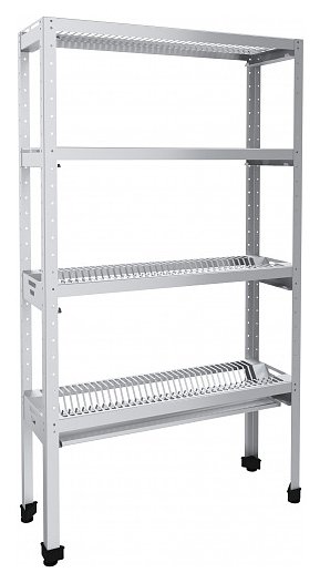 Стеллаж Пищевые Технологии Стандарт СКТСН-22Н-900 предназначен для хранения тарелок и стаканов на предприятиях общественного питания и торговли. Модель оснащена 2 сетками для тарелок, 2 сетками для стаканов, поддоном для сбора жидкости из нержавеющей стали и регулируемыми по высоте ножками. Каркас выполнен из уголка нержавеющей стали толщиной 1,5 мм, сетки - из нержавеющей стали AISI 430 толщиной 1 мм, упаковка - из гофрокартона.