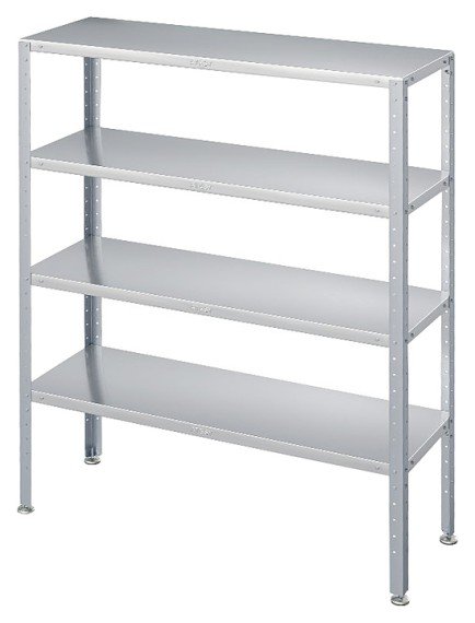 Кухонный стеллаж ATESY СТК-С-1300.600.1600-02 серии Стандарт предназначен для хранения посуды, различного инвентаря и сухих продуктов на предприятиях общественного питания и торговли. Модель оснащена 4 полками и 4 стойками. Сплошные полки выполнены из пищевой нержавеющей стали AISI 430 толщиной 0,8 мм, каркас - из оцинкованной стали толщиной 1,2 мм, опора ножек - из пластика.