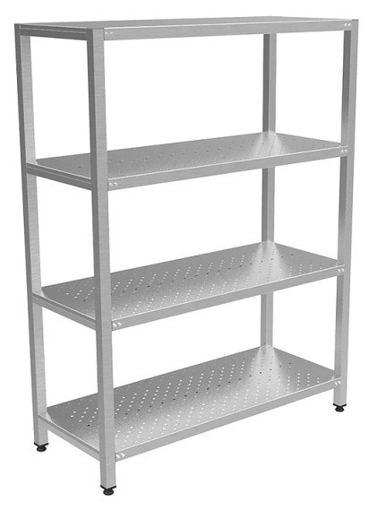 Кухонный стеллаж Кобор СКТП-90/50 предназначен для хранения посуды, различного инвентаря и сухих продуктов на предприятиях общественного питания и торговли. Модель оснащена регулируемыми по высоте ножками с опорами, которые не подвержены коррозии. Сварной каркас выполнен из оцинкованной стальной квадратной трубы 40х40 мм, перфорированные полки - из нержавеющей стали AISI 430.