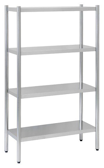 Кухонный стеллаж ATESY СТК-П-600.600.1600-02 серии Престиж предназначен для хранения посуды, различного инвентаря и сухих продуктов на предприятиях общественного питания и торговли. Полки выполнены из нержавеющей стали AISI 430 толщиной 0,8 мм, каркас - из трубы диаметром 40 мм из нержавеющей стали AISI 201, ножки - из нержавеющей стали, опора ножек - из пластика.