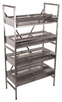 Модульный кухонный стеллаж Rada СМС-8/4Н серии ПРОФИ предназначен для использования в ресторанах, столовых и магазинах для сушки и хранения тарелок. Конструкция оснащена боковыми стойками, позволяющими наращивать стеллажи в длину, получая единую конструкцию. Разборный каркас выполнен из нержавеющего профиля, полки и сушка - из нержавеющей стали.