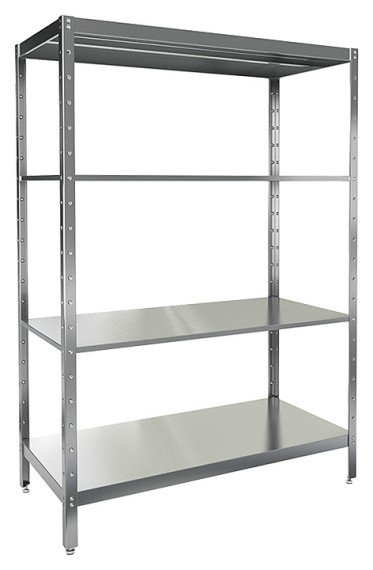 Стойки выполнены из стального нержавеющего уголка 40х40 мм, имеют дополнительную отбортовку и комплектуются регулируемыми опорами. Полки из шлифованной нержавеющей стали марки усилены дополнительными ребрами жесткости.