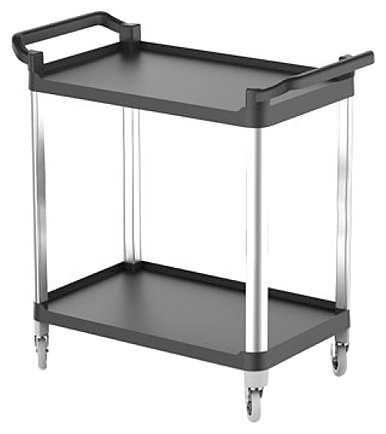 Сервировочная тележка Empero EMP.PSV.02 используется на предприятиях общественного питания для перемещения готовых блюд, напитков и посуды в зал приема пищи, а также для подачи грязной посуды из зала в моечное отделение. Модель оснащена 2 вместительными полками и 4 подвижными колесами. Стойки выполнены из алюминия, полки - из ударопрочного пластика.