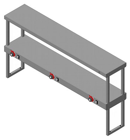 Тепловая полка Iterma П-ИК-2-1500/300/800 ВН используется на предприятиях общественного питания и торговли для демонстрации и поддержания в теплом состоянии готовых блюд. Модель оснащена 3 зонами обогрева с раздельными органами управления. Полки и стойки выполнены из нержавеющей стали.